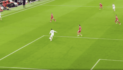 第43分钟,贝林厄姆在禁区线附近连续盘带,突然起脚,皮球直钻死角,皇马半场结束就已经3-0领先了。